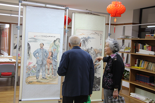 画展在公寓一层书画室内举办,到了开展时间爷爷奶奶们接踵而至,展画的作者黄爷爷给大家做了简要的自我介绍,为大家讲解展画的内容,并耐心的回答每位“粉丝”的提问。
