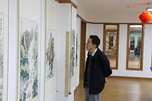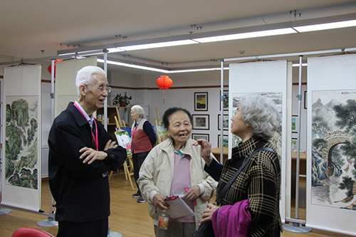 画展进行期间,爷爷奶奶们有的在彼此交流自己的意见和想法,有的在请教作者黄爷爷解答自己的不解之处,有的在静静品画……