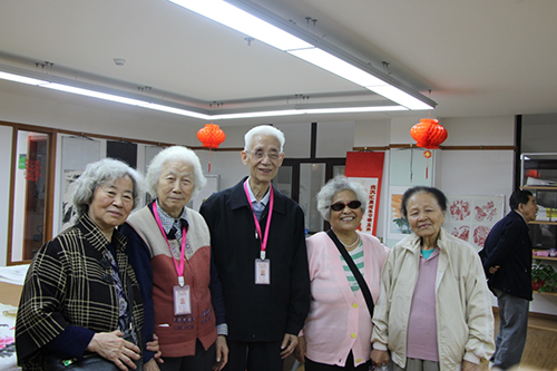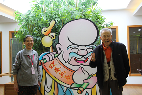 爷爷奶奶们对画室门口做宣传的“白胡子老头”也很感兴趣,纷纷要求要和他合照留念。