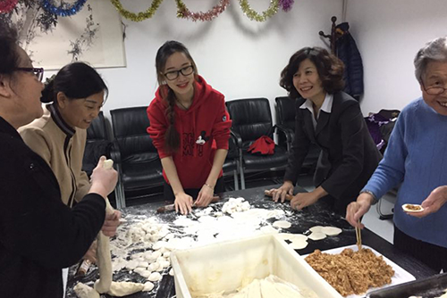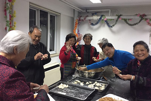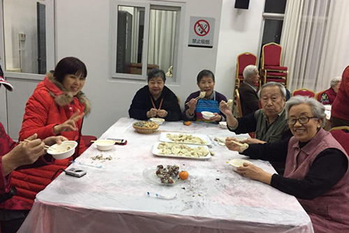 北京汇晨老年公寓于1月27日大年除夕夜包饺子,晚上五点,社工们就已经做好准备开始和面、擀饺子皮儿了,有的长者也是早早的就到场帮忙,大家分工合作,有条不紊,有的切面,有的擀皮儿,还有的包饺子,卢院长也全程参与,平易近人地为老人服务,就好像一大家子过年一样,场面甚是温馨。不久,桌上出现形态各异的“饺子”。饺子下锅,长者们也是相互玩闹,如孩子般。煮熟的饺子端过来,长者们也围圈坐下,品尝劳动成果,社工们一边忙和,一边给长者们拍照片留下美好的纪念。好吃不过饺子,温暖不过集体,在这顿晚餐的过程中,大家用欢歌笑语搭起了心与心的桥梁,长者们的家属也参与其中,共同感受着节日的喜庆氛围。多功能厅热闹非凡,放着春晚节目,长者们吃着刚煮出来的饺子,开心的笑脸一张张!