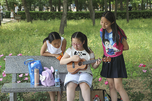 我们这支浩浩荡荡的队伍也引来了公园正在休憩的游客的目光,一位妈妈看到志愿者们推着爷爷奶奶们散步,称赞道“你们真是好样的,有爱心”,于是叫自己的孩子也为爷爷奶奶们演奏一曲。,稚嫩的童声,优美的旋律;小小的年纪,大大的爱。一曲结束引得爷爷奶奶和志愿者们鼓掌叫好。人皆有老,爱心永存!孔子曾说:“老吾老以及人之老,幼吾幼以及人之幼”,意思是: 尊敬自己的父母长辈,从而推广到尊敬所有人的父母长辈; 爱护自己的孩子,从而推广到爱护所有人的孩子。这群年轻的志愿者和这位善良的妈妈正是在身体力行的告诉可爱的孩子们“老吾老以及人之老,幼吾幼以及人之幼”。