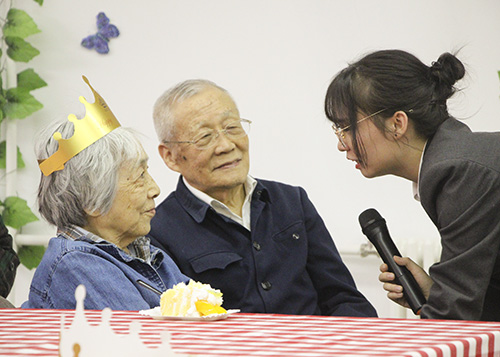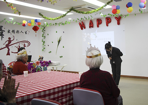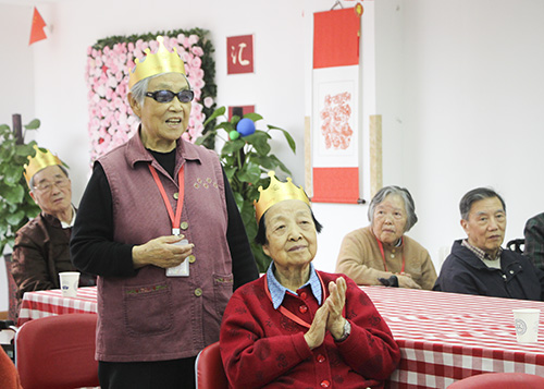 生日会是一个相聚的时刻,是一个开心的时刻,为了参加此次生日会奶奶们还特地换上好看的服装,你瞧,生日会还没有开始穿着漂亮衣服的“姐妹儿”就开始热情的打招呼、拉话常……