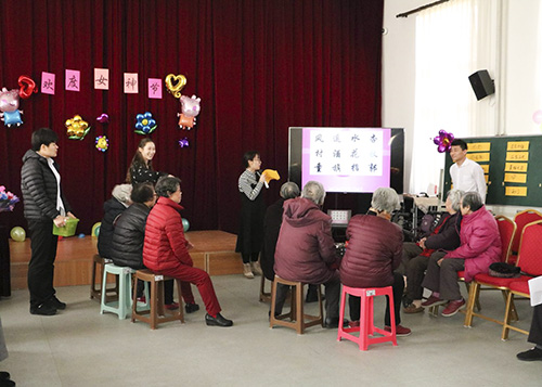 此次活动共吸引了150余位长者参加,在一首诗歌朗诵《天下女人》的优美诵读声中拉开了帷幕。随后,我们进行了“最强大脑”、“急转弯连连看”、“察言观色”、“只可意会不可言传(传“声”筒)”等内容新颖的小游戏。现场的“女神”们踊跃加入其中,尽情地展示自己的风采,精彩的活动也引来在坐的长者们阵阵掌声,整场的活动都洋溢着欢声笑语。
