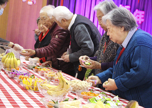 品尝区为爷爷奶奶准备了美味的点心、水果及各种小零食,当然还有香甜可口的元宵与汤圆,大家可以在这里静静地享受美食。