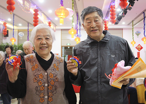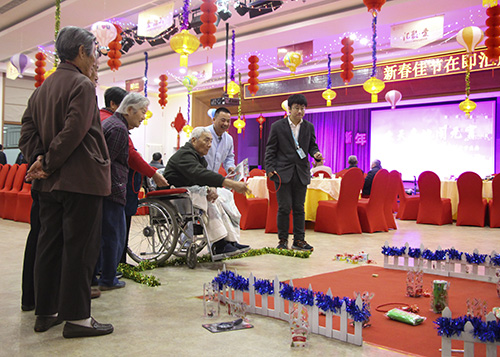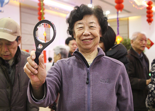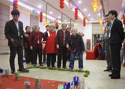 套圈游戏成为“开心时光”里人气最高的游戏,看着大家的笑颜和只增不减的兴趣劲儿,吴院长也忍不住来了一局,在这个游戏中大家不仅获得了很多礼物,许多爷爷奶奶还表示又让他们年轻了一次。