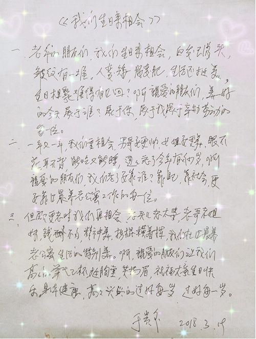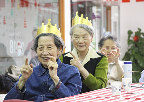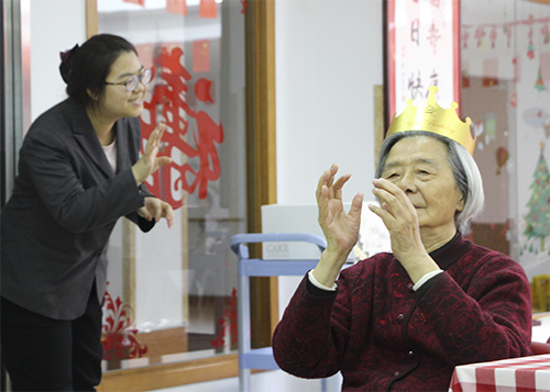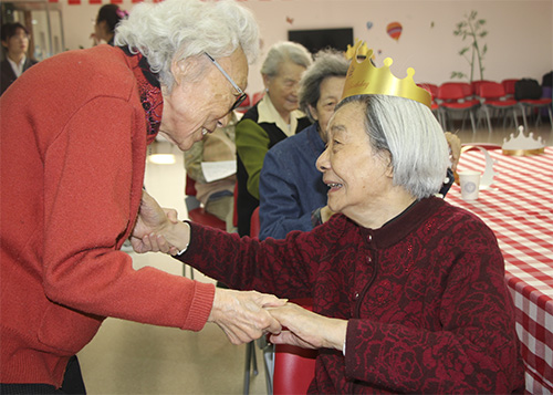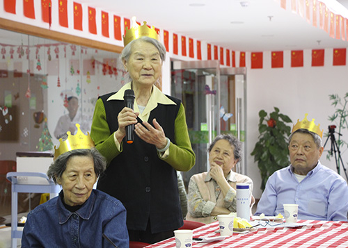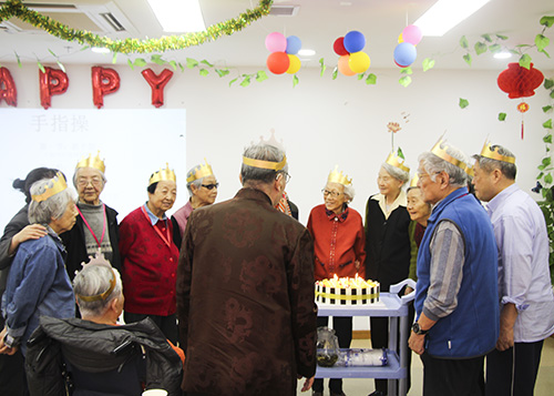 生日会是一个相聚的时刻,是一个开心的时刻,为了参加此次生日会奶奶们还特地换上好看的服装,你瞧,生日会还没有开始穿着漂亮衣服的“姐妹儿”就开始热情的打招呼、拉话常……