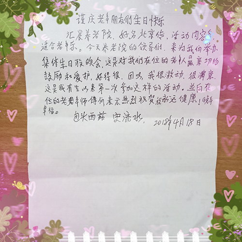 (生日会结束后收到一封来自四月寿星的信笺)