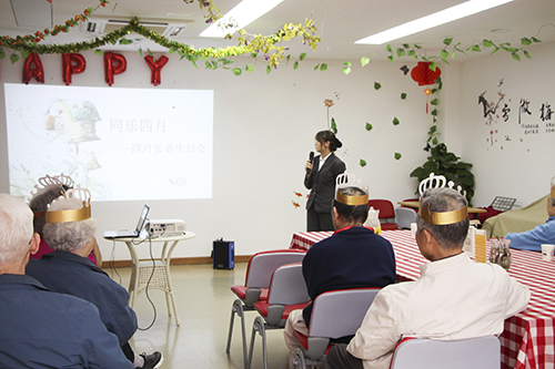 首先由主持人为四月过生日的寿星们送上真挚的祝福,接下来接力棒交给爷爷奶奶们,大家一一发言,相互认识,爷爷奶奶们有的做自我介绍、有的以歌会友、还有的送上生日祝福并分享在公寓的幸福生活……生日会场一片欢声笑语,其乐融融。