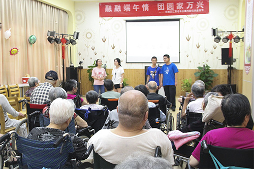七月是党的生日,也是我们幸运寿星的生日。bat365正版唯一官网北京东城区老年公寓特邀请化工大学的同学们在7月14下午三点半陪我们的爷爷奶奶度过一个热闹的生日会。