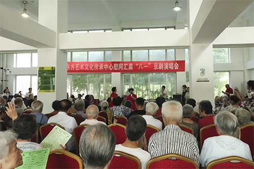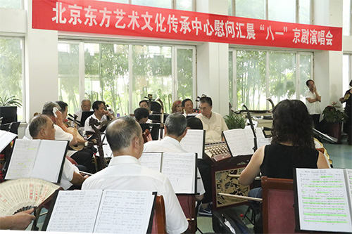 为庆祝中国人民解放军建军91周年,北京东方艺术文化传承中心携京剧名票走进bat365正版唯一官网北京老年公寓,开展了庆“八一”主题京剧慰问活动。让我们一起讴歌人民解放军的丰功伟绩,颂扬人民解放军为保卫祖国,用血肉筑起的钢铁长城。