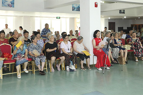 首先是由京剧演员王丽萍老师带来的«贵妃醉酒·海岛冰轮»,此选段以不急不缓的节奏,委婉细致的四平调唱腔,完美的表现了杨贵妃怨愤又无可奈何的心情,伴奏乐器京胡的音色明亮而有韧性,在润腔韵味上与演员的嗓音、唱腔相结合,完美地体现出这一京剧唱段的原汁原味。王老师激情投入的演唱,赢得了长者们的阵阵掌声与喝彩,也将慰问演出推向了一个小高潮。