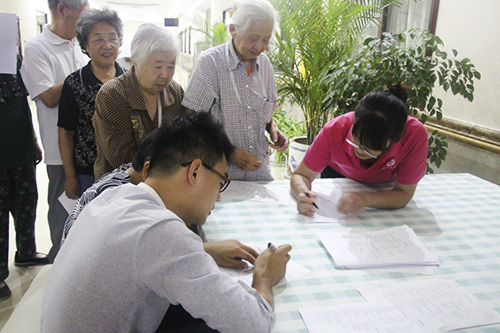 长者们对此次活动表现出积极踊跃的态度,在我院护理员和社工的协助下,他们在现场领取填写健康量表。该量表详细的列举出有关老人饮食、运动及常见疾病的几个方面的内容,长者们在工作人员耐心的讲解下,认真的完成了该健康量表。