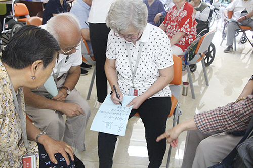 社工详细的介绍了比赛规则,在护理员耐心的协助下,知识竞赛进入高潮,六个组的长者们都敞开心扉,释放激情,分享智慧,在彩纸上书写出心中的答案。在整个竞赛过程中,组员们相互讨论,分享交流,激烈又兴奋。最后我们的第一组在知识竞赛中上拿下光荣的一等奖。