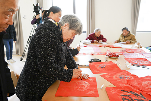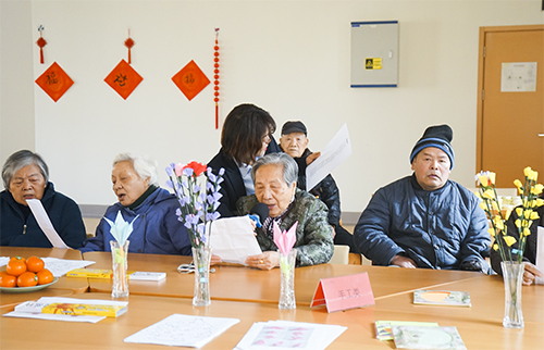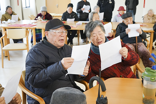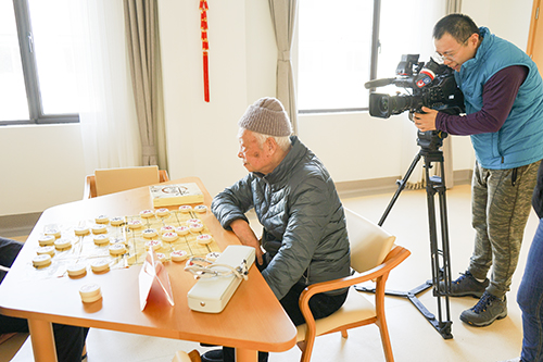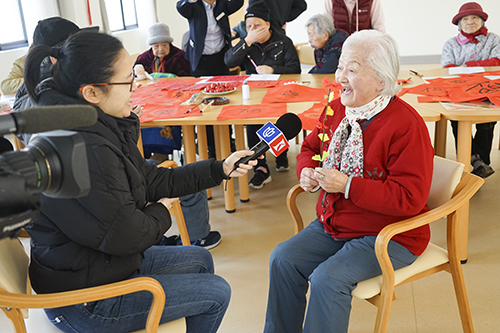 2019年1月17日(周四上午),上海杨浦区bat365正版唯一官网长白老年福利院的活动大厅内热闹非凡,欢声笑语。临近春节,院内工作人员们在日常活动开始之前,组织院内长者们齐唱歌曲《恭喜恭喜》,伴随着一声声“恭喜恭喜恭喜你呀”,上海电视台的专员记者来到福利院内采访记录院内长者们的日常生活。