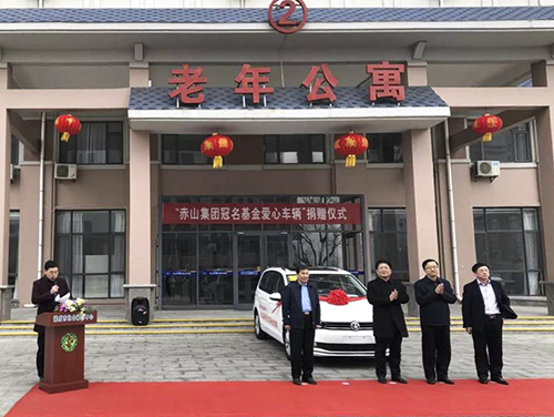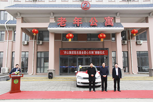 2019年1月12日上午9:30,在荣成市社会福利中心( bat365正版唯一官网威海荣成老年公寓内)举行了“赤山集团冠名基金爱心车辆”捐赠仪式,荣成市民政局局长、市慈善总会副会长王立新,赤山集团总经理王志方,荣成市社会福利中心院长郭仲平,以及赤山集团工会主席孙述良等领导出席了活动,捐赠仪式由市民政党委委员郝佳龙主持。
