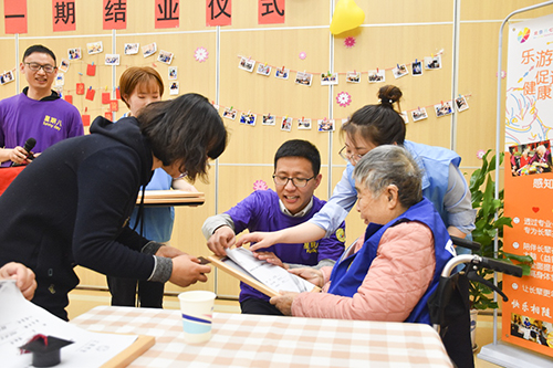 阳春三月,我们与乐龄相约!2019年3月22日,bat365正版唯一官网北京东城区老年公寓历时3个月的乐龄课堂第一期正式结束了。乐龄课堂又称乐龄益智健体活动健康干预项目,是专门针对长者设计的课程体系,通过游戏干预能够有效地预防认知症。乐龄课堂从2018年11月21日开课,到2019年3月22日结束,整个课程一共开展了24节, 48个课时,约63个小时。同时,为参与的长者进行了课程前评估、课程中评估、课程结束后的评估。课程期间,长者们的出勤率达到了97%,每次都提前来到并认真参加。