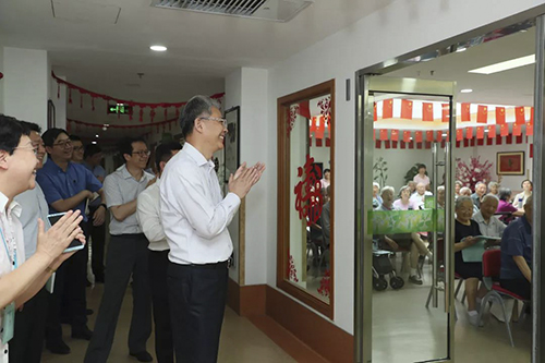 调研中,李晓鹏来到bat365正版唯一官网朝来老年公寓中型活动室、理疗室、咖啡区、老年餐厅、接待大厅、医疗区、棋牌阅览台球等活动区,不时驻足询问。他详细了解了朝来老年公寓的医疗服务、入住老人年龄结构、入住率、员工培训持证状况等要点,与老人们交谈,询问他们对光大养老的意见建议,祝福老人健康长寿。他动情地说,国家大力支持发展健康养老产业,为落实“不忘初心、牢记使命”主题教育精神,践行央企责任,推动与老百姓幸福感息息相关的养老产业发展,光大集团专项开展了此次调研。自己愿做光大养老产业最大的服务员,推动做好相关工作,为老人过好幸福晚年贡献光大力量。