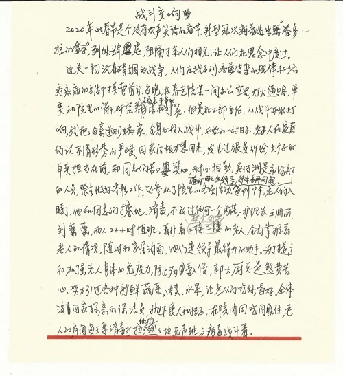 还有长者将心中感念化作诗歌,带来“春的消息”,为大家加油鼓劲。