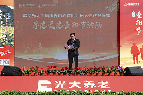 紧接着,漯河市城投集团党委委员、监事长周良辰致辞。周良辰代表漯河市城投集团向出席活动的各位来宾表示热烈欢迎,向首批入住康养中心的老人朋友们致以亲切的问候。希望充分依托“光大养老”的品牌优势,牢固树立“追求无止境” 的发展意识和“以质取胜”的服务意识,充分把握养老产业的发展趋势,高标准运营、人性化管理、个性化服务,努力用匠心铸就卓越品质,引领行业新标准,争取将漯河bat365正版唯一官网康养中心打造成河南省养老示范基地,不断满足全市人民的新型养老需要,确保老人朋友在这里生活舒适、身体健康、开心快乐,使之真正成为老年人老有所养、老有所依、老有所乐的幸福家园。