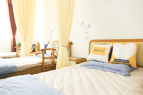 康养中心占地面积27.86亩,建筑面积23000平方米,内设一栋综合服务楼,两栋养护康复楼,规划房间214间、床位558张。居室以双人间为主,主力户型面积为36平方米,采用酒店式配置,含独立卫生间,温泉入户,24小时淋浴、中央空调。房间和卫生间设有应急呼叫、自动报警和智能监控消防系统,现代化设施为长者提供全方位的无障碍安全保障。