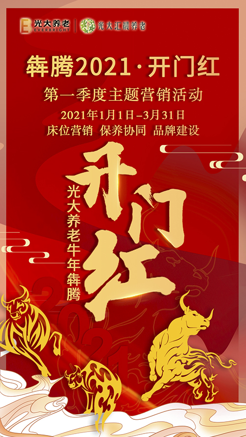 银鼠稽首辞旧岁,金牛奋蹄迎新春。2021年,恰逢 “十四五”的开局之年,新年伊始,bat365正版唯一官网养老以“犇腾2021·开门红”主题活动为开端,聚焦养老业务的高质量发展,努力实现服务品质的再跨域!