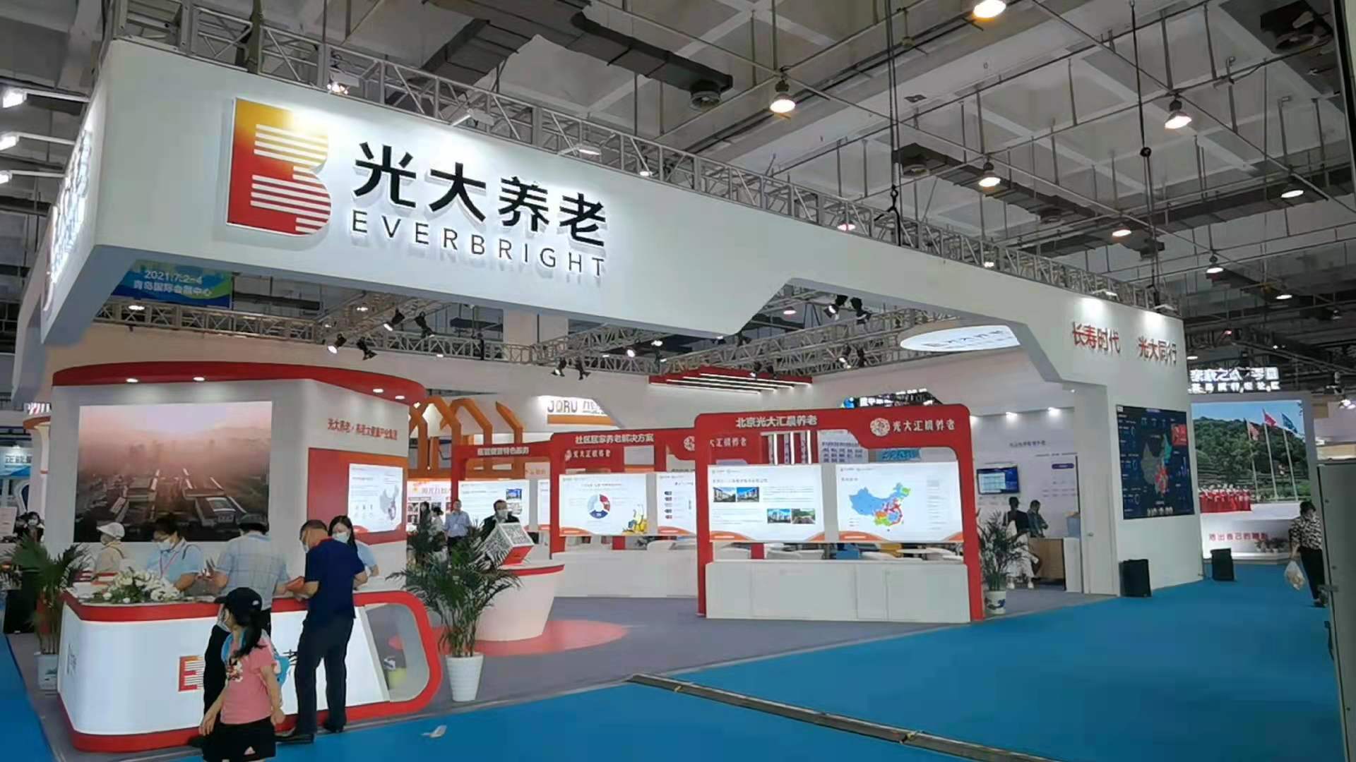展会主入口处,光大养老近300平方米的大展位醒目耀眼,红白配色沉稳大气,熠熠生辉的LOGO、“长寿时代 光大同行”标语,展现出光大养老作为央企的责任与担当,这不仅是光大养老的企业愿景,更是3000多名光大养老人日复一日、年复一年深耕养老产业的动力和支撑。